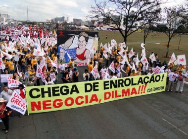 Os técnicos administrativos de universidades federais recusaram a proposta de reajuste de 15,8%, fracionado até 2015 feita nesta sexta-feira (10) pelo governo federal. Os representantes da Federação de Sindicatos de Trabalhadores das Universidades Brasileiras (Fasubra) e do Sindicato Nacional dos Servidores Federais da Educação Básica, Profissional e Tecnológica (Sinasefe) exigiram aumento de 15% em 2013, com a possibilidade de negociação de novos reajustes nos anos seguintes, para encerrar a greve. Segundo a coordenadora da Fasubra, Janine Teixeira, a categoria não está disposta a ceder. “Já estamos com 90% das universidades paradas. Não estamos realizando matrícula. Não vamos sair de mãos abanando”, relatou. "Se a proposta não melhorar não tem nem vestibular. Apresentamos para o governo uma contraproposta de que o índice parcelado em três vezes [de 15,8% apresentado pelo governo], seja aplicado integral para o próximo ano", explicou Janine. De acordo com Sérgio Mendonça, secretário de Relações do Trabalho do Ministério do Planejamento, além dos técnicos administrativos das universidades federais, o governo apresentou proposta para os docentes do ensino superior, com impacto previsto no orçamento para 2013 de R$ 2,1 bilhões com as duas ofertas. “As categorias têm uma pauta em que as expectativas que as entidades colocam é muito acima da capacidade [do governo] de atender. De fato, pautas que estão muito distantes dificultam o processo de negociação”, disse Mendonça.